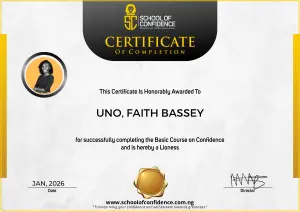The School of Confidence is not just a place to develop and build confidence. It is a place for addressing your self esteem and self worth, placing the right value on yourself. It is a moulding ground for serious minded people who are intentional about imparting and impacting their generation.